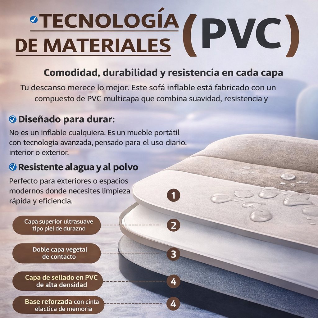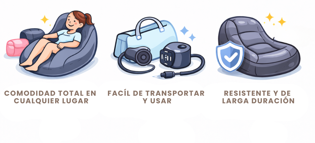 ✅ Muy poco. Se infla en minutos con el inflador incluido y se desinfla rápidamente para guardarlo sin esfuerzo.
